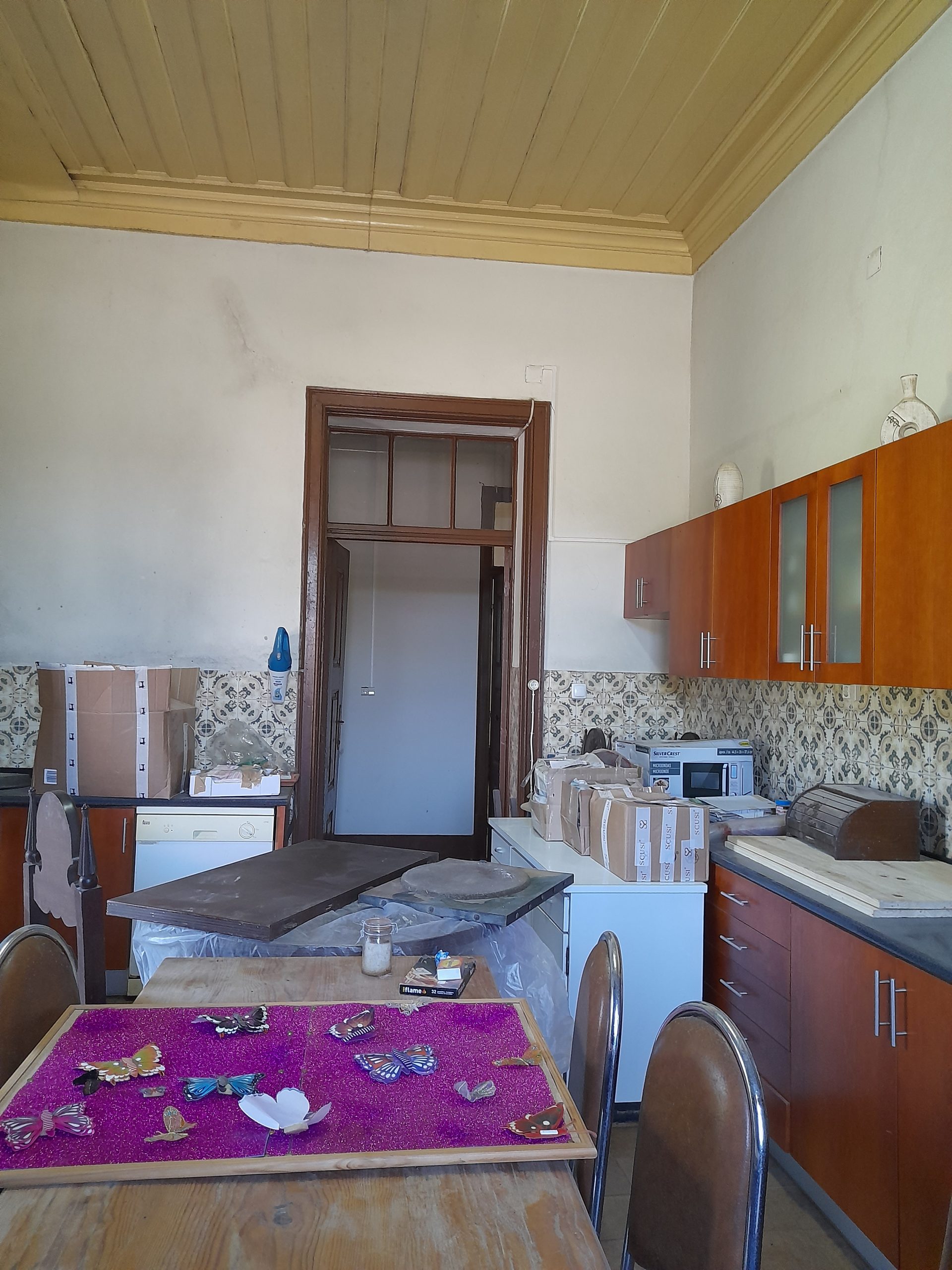 O sótão é aproveitado com 3 mansardas, uma no alçado principal e duas em cada um dos alçados